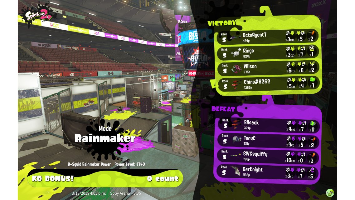 | Name | Weapon | Level | Rank | Inked | k+a/sp | k/d |