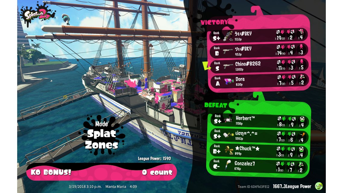 | Mode | Splat Zones - League Battle (Twin) |