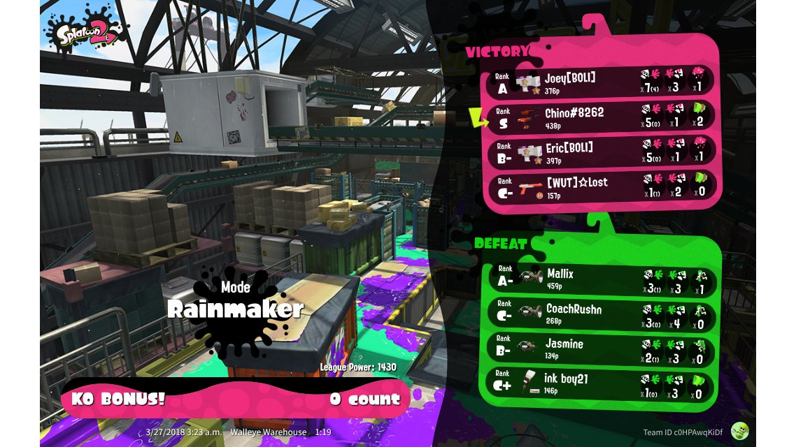 | Name | Weapon | Level | Rank | Inked | k+a/sp | k/d |