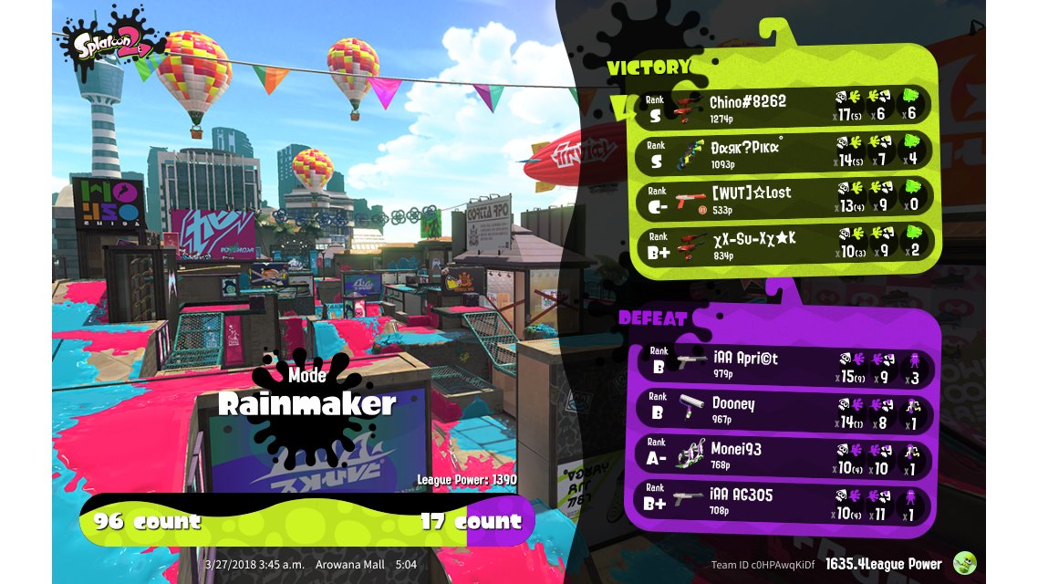 | Name | Weapon | Level | Rank | Inked | k+a/sp | k/d |