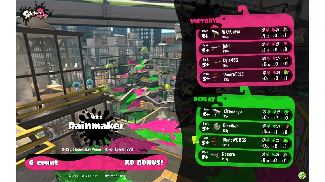 | Name | Weapon | Level | Rank | Inked | k+a/sp | k/d |