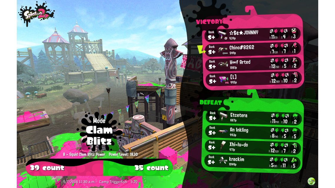 | SplatNet Battle # | 1,830 | |||||||||||||||||||||||||||||||||||||
