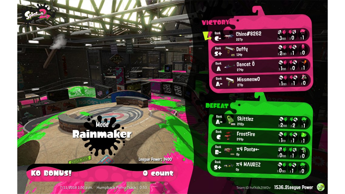 | Mode | Rainmaker - League Battle (Twin) | ||||||||||||||||||||||||||||||||||||||||