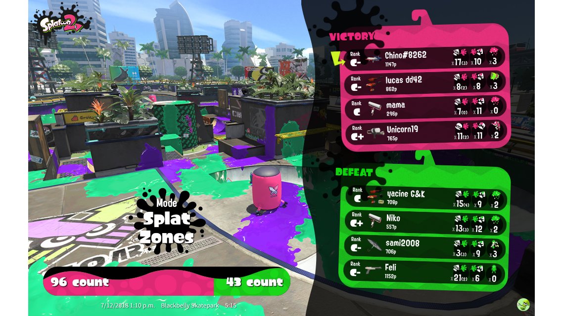 | Mode | Splat Zones - Ranked Battle | ||||||||||||||||||||||||||||||||||||||||
