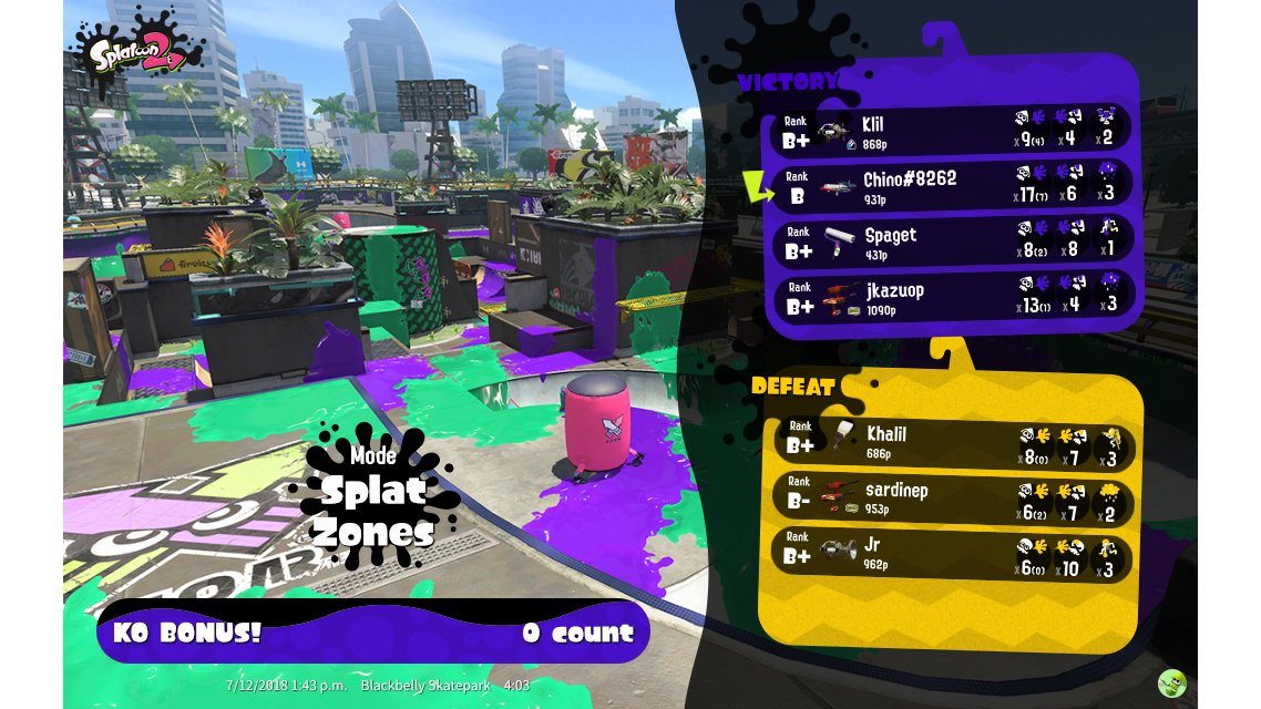 | Mode | Splat Zones - Ranked Battle | |||||||||||||||||||||||||