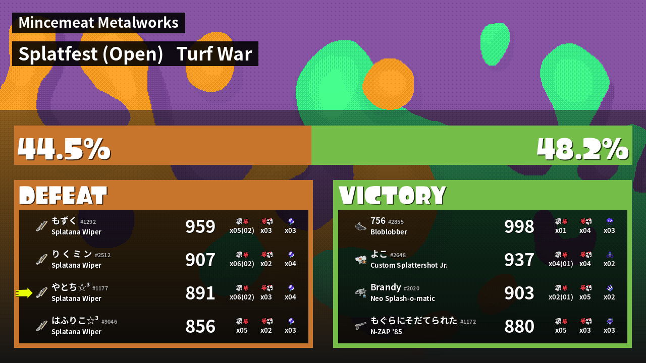 | Medals | #1 Overall Splatter #1 Popular Target #1 Enemy-Base Inker | ||