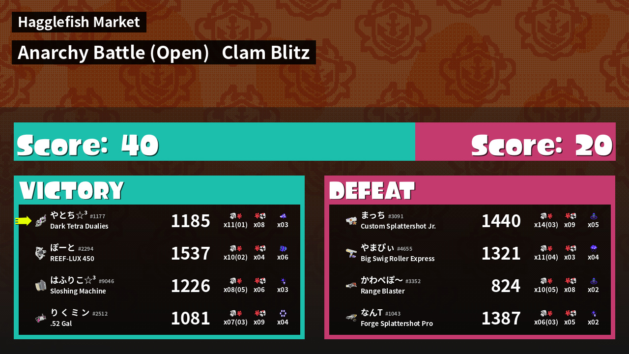 | Mode | Clam Blitz - Anarchy Battle (Open) | ||