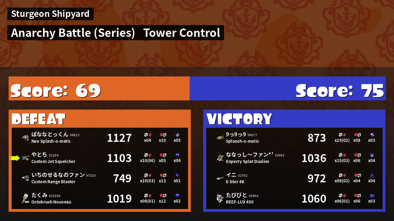 | Medals | #1 Overall Splatter #1 Splat Assister #1 Tower Stopper | ||