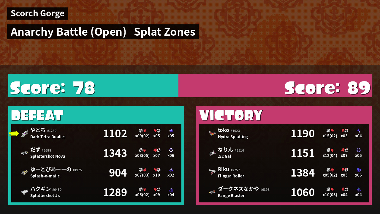 | Mode | Splat Zones - Anarchy Battle (Open) | ||