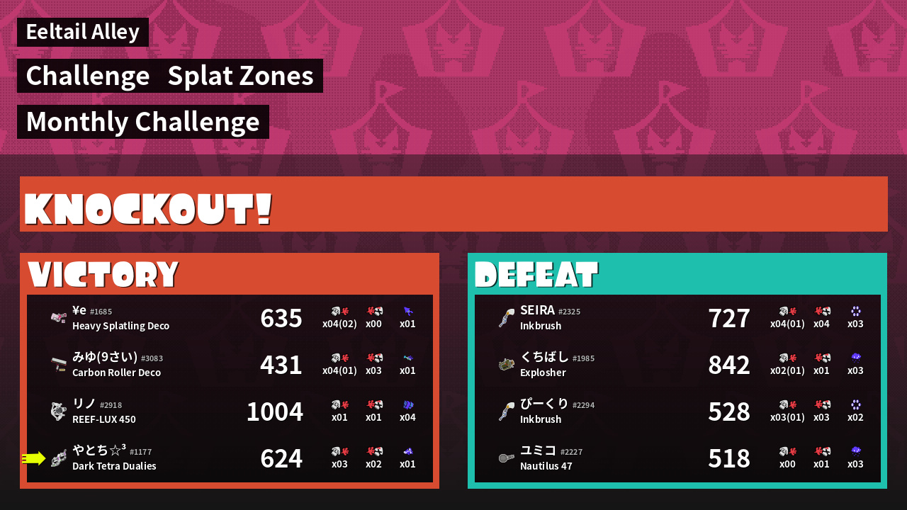 | Medals | #1 Enemy Splatter #1 Splat Zone Hero First Splat! | ||