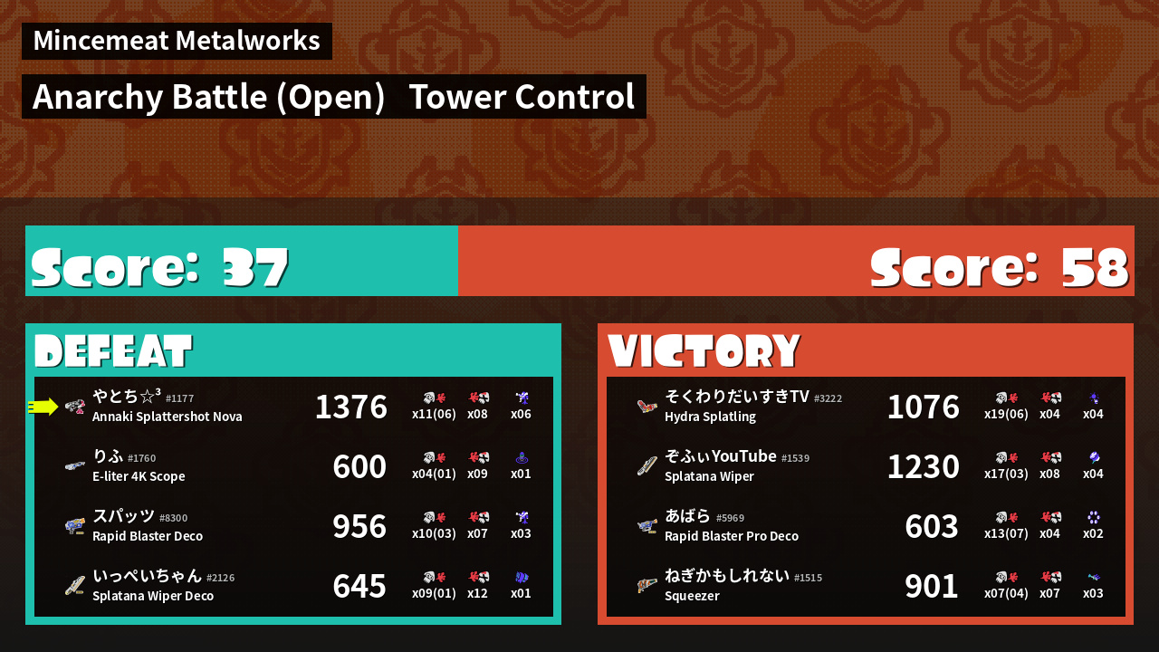 | Mode | Tower Control - Anarchy Battle (Open) | ||