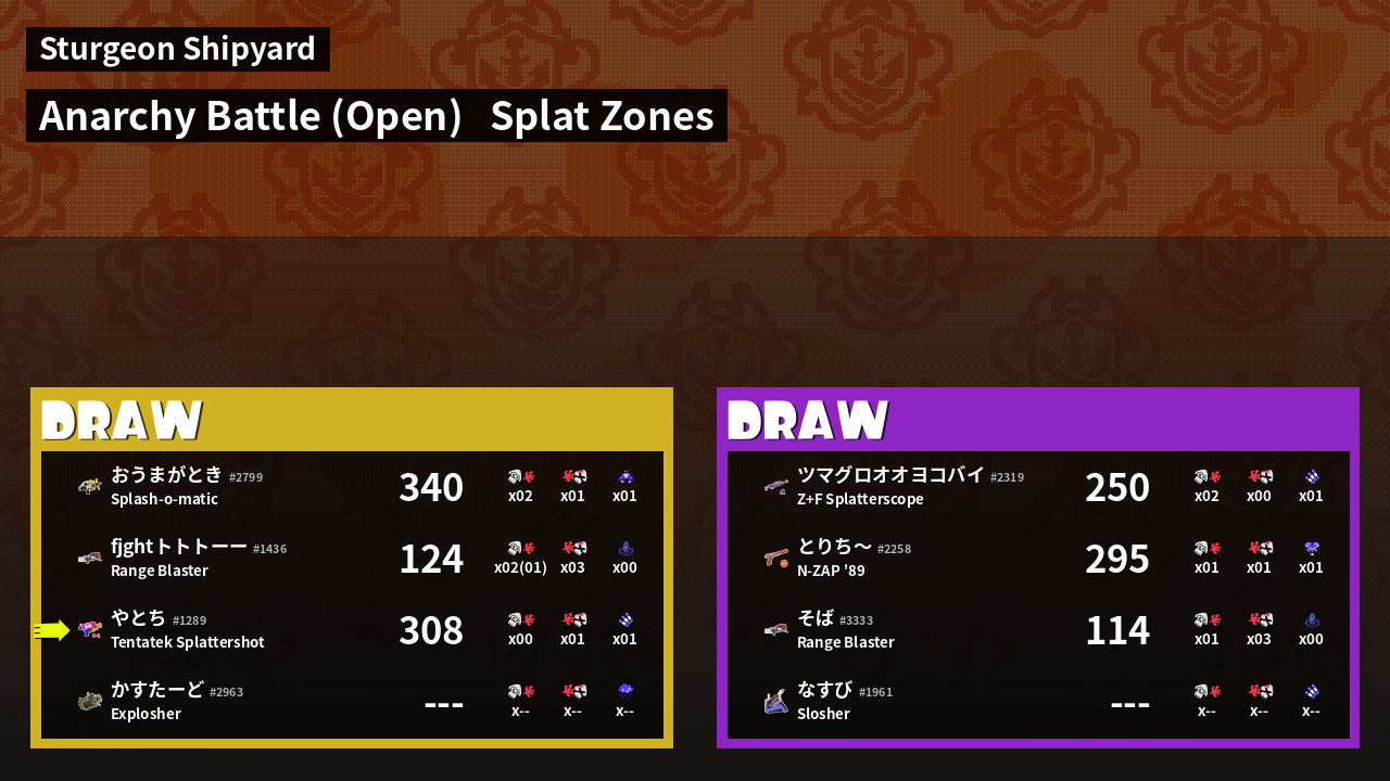 | Mode | Splat Zones - Anarchy Battle (Open) | ||