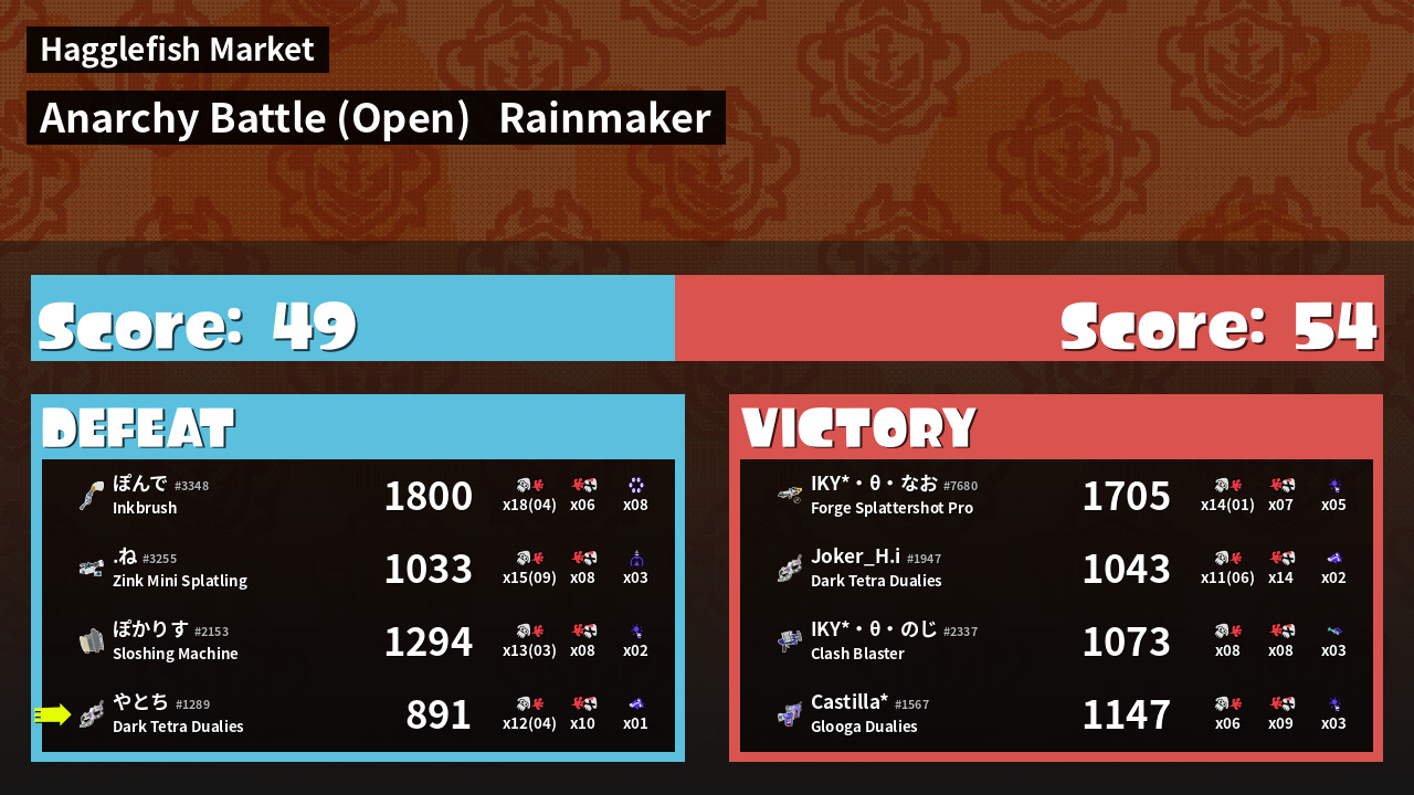 | Mode | Rainmaker - Anarchy Battle (Open) | ||