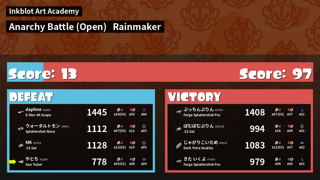 | Mode | Rainmaker - Anarchy Battle (Open) | ||