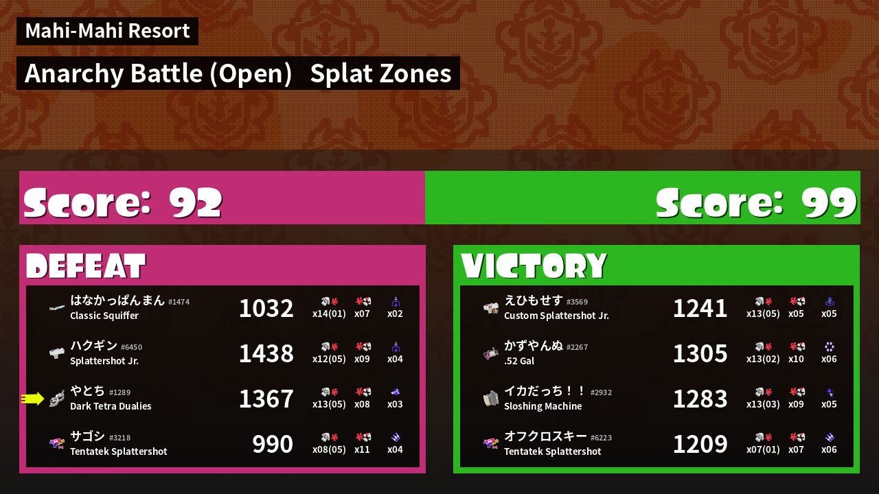 | Mode | Splat Zones - Anarchy Battle (Open) | ||