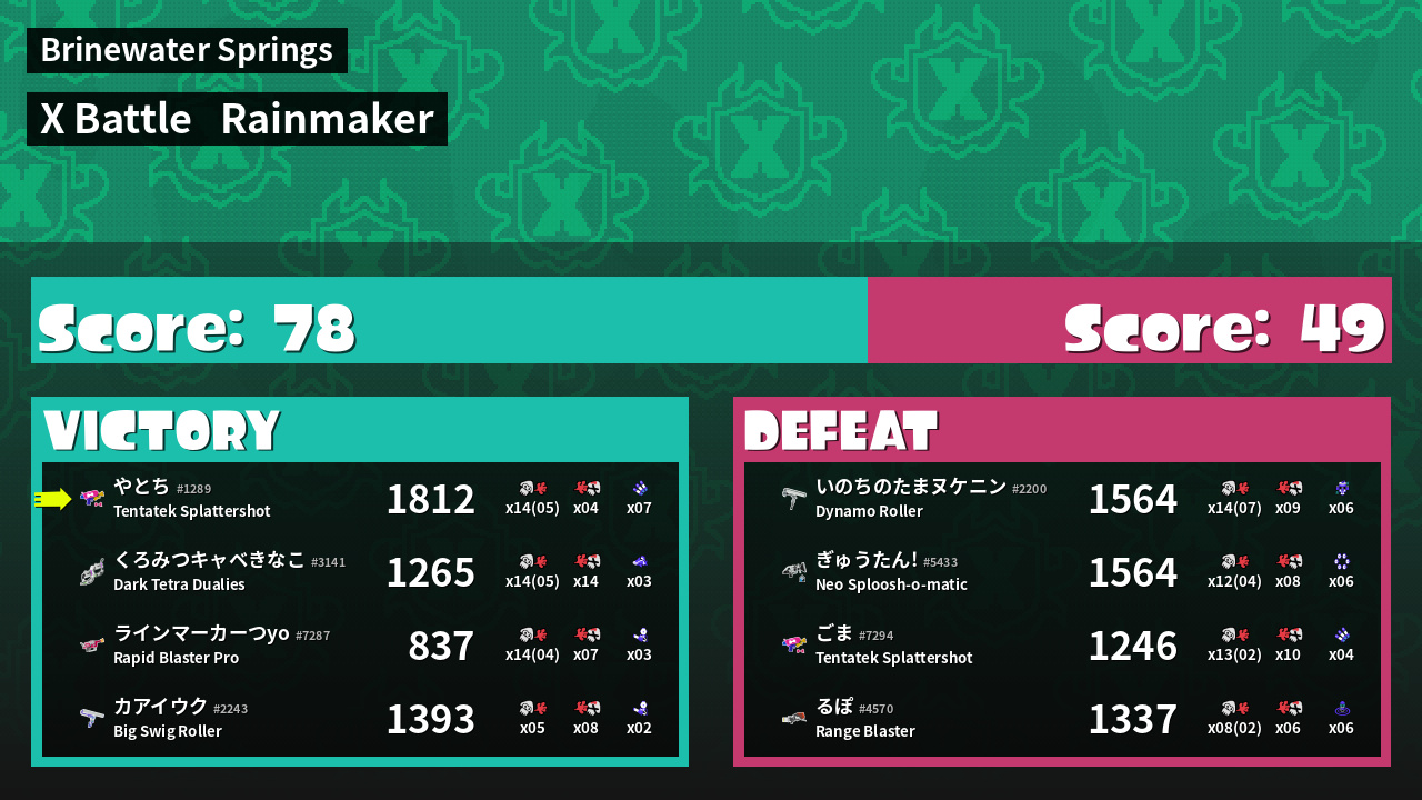| Medals | #1 Overall Splatter #1 Turf Inker #1 Super Jump Spot | ||