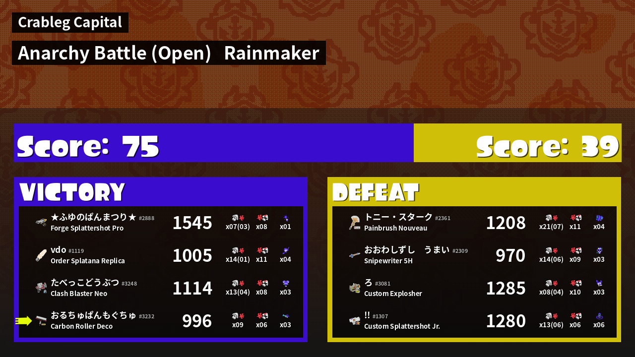Results of おるちゅばんもぐちゅ's Battle