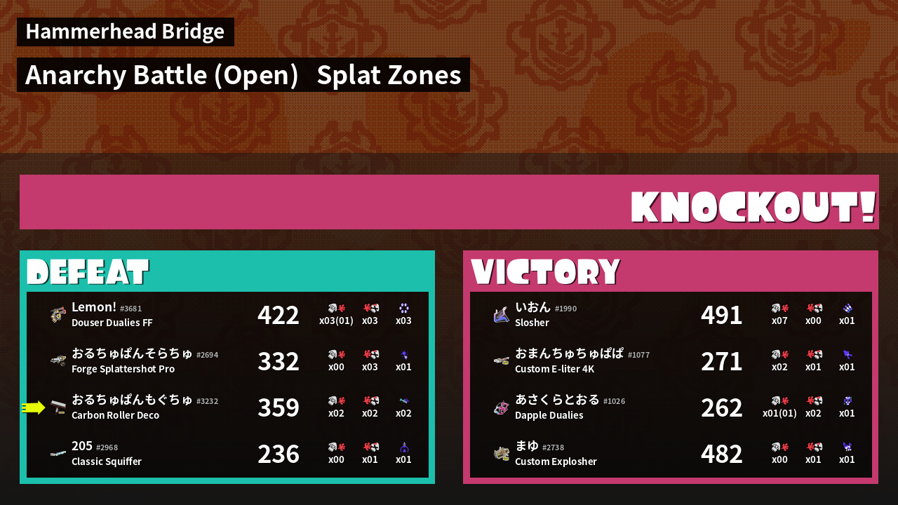 | Mode | Splat Zones - Anarchy Battle (Open) | ||
