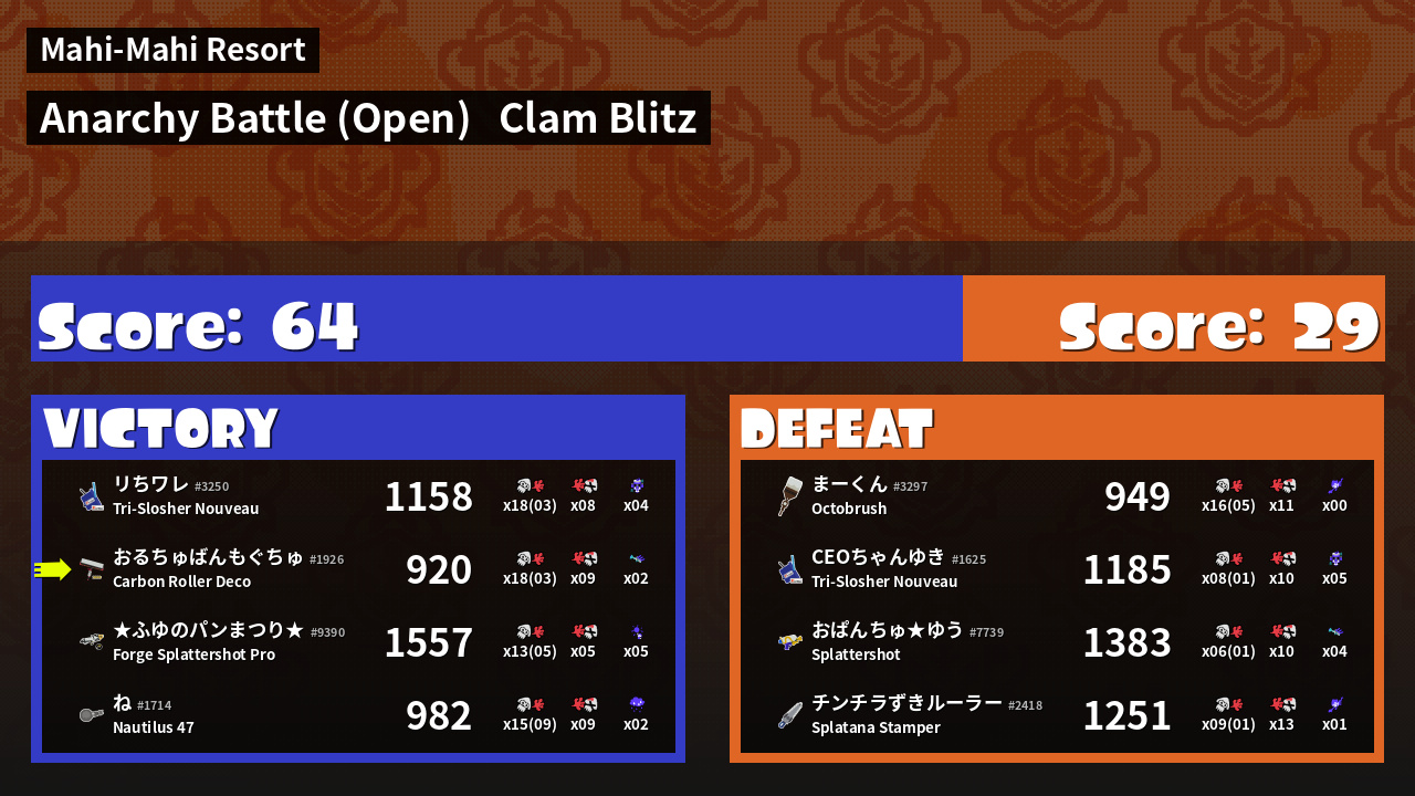 | Mode | Clam Blitz - Anarchy Battle (Open) | ||