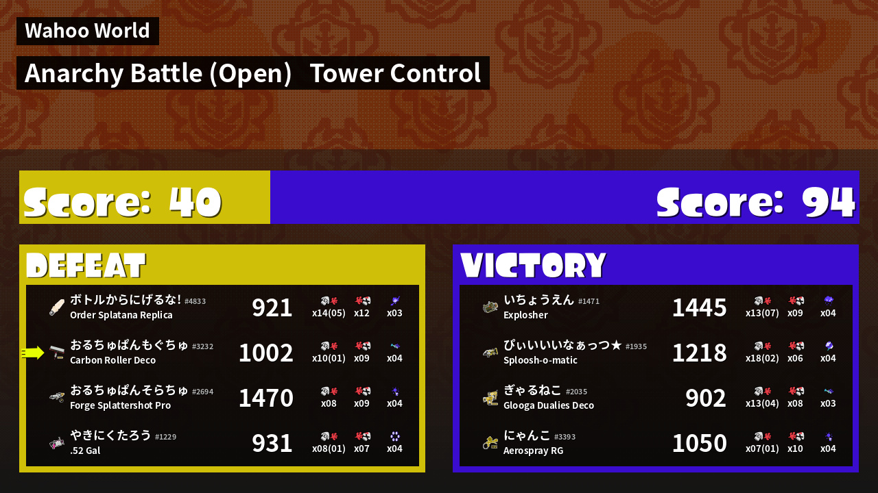 | Mode | Tower Control - Anarchy Battle (Open) | ||