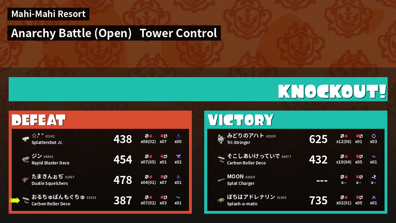 Results of おるちゅばんもぐちゅ's Battle