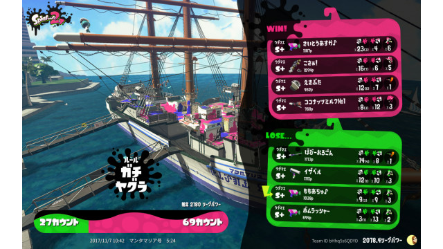 | Name | Weapon | Level | Rank | Inked | k+a/sp | k/d |