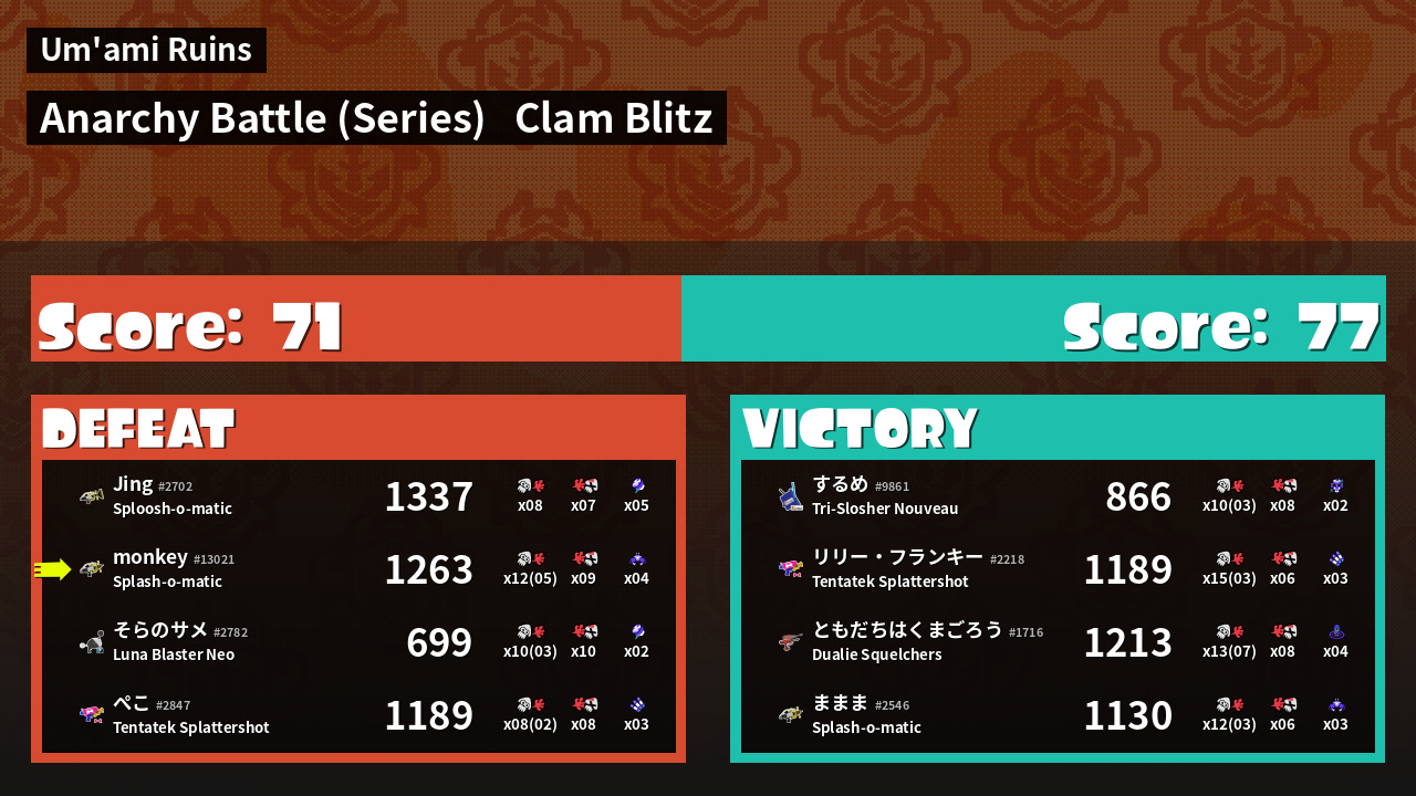 | Mode | Clam Blitz - Anarchy Battle (Series) | ||