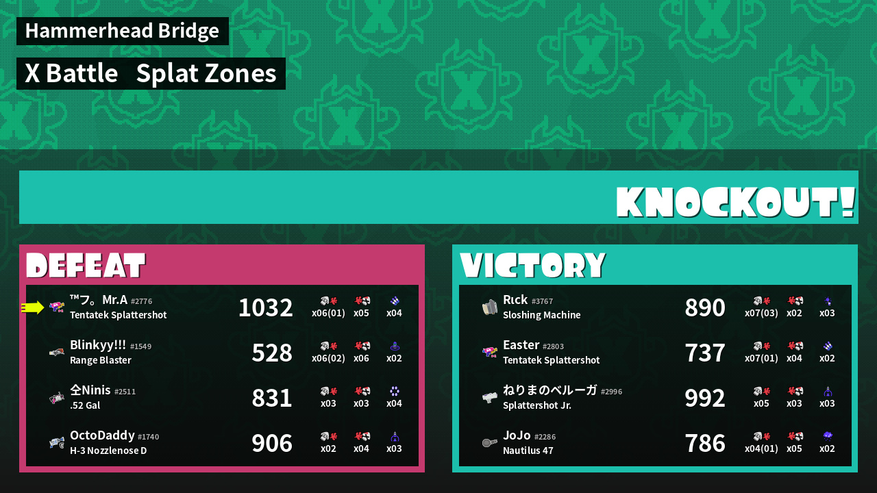 | Mode | Splat Zones - X Battle | ||