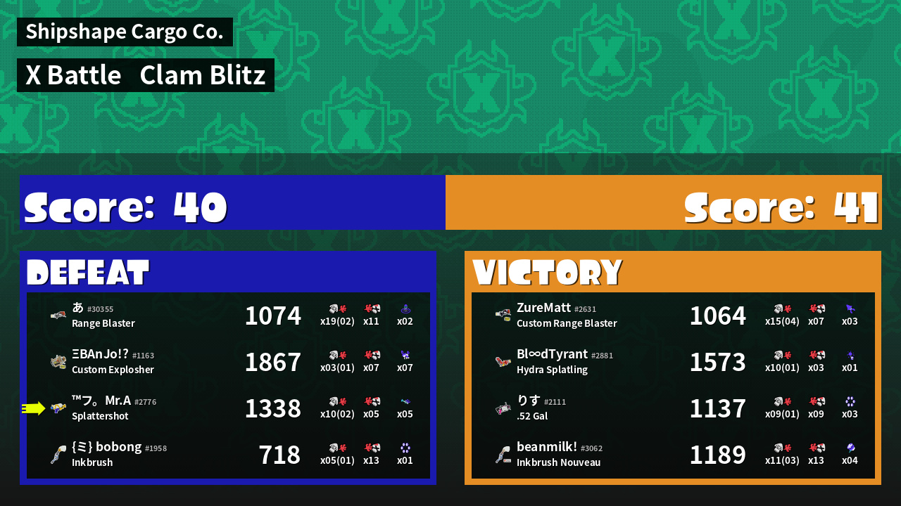 | Medals | #1 Score Booster #1 Splat Assister #1 Ink Consumer | ||