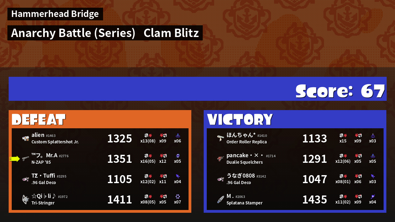 | Mode | Clam Blitz - Anarchy Battle (Series) | ||