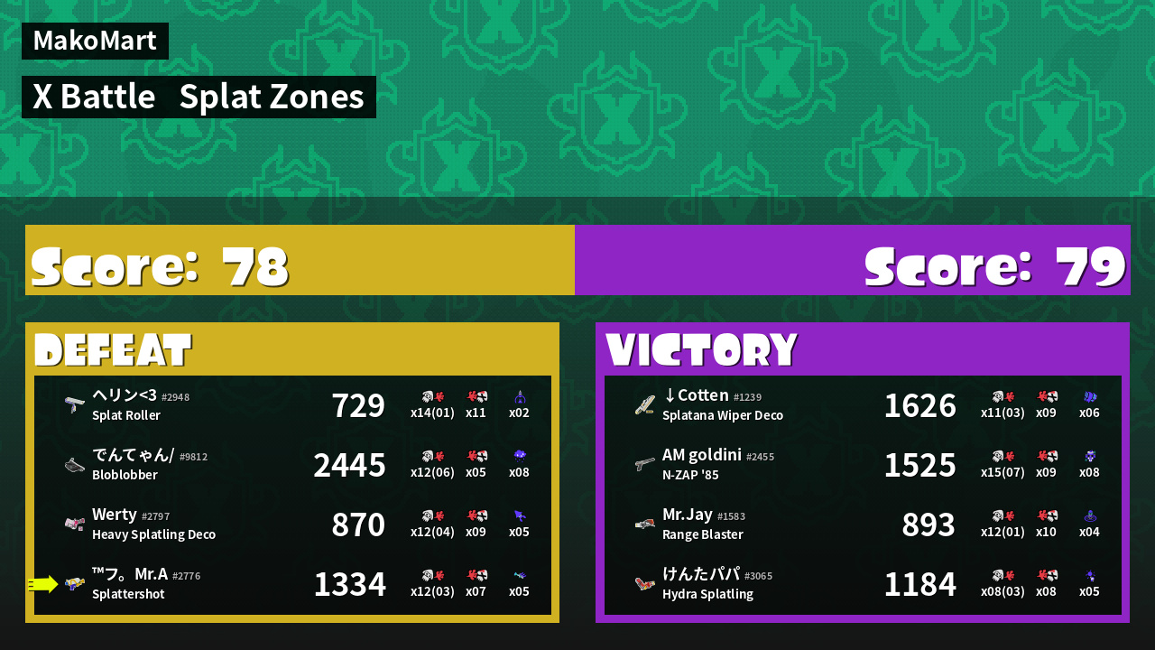 | Medals | #1 Ground Traveler #1 Trizooka User #2 Overall Splatter | ||