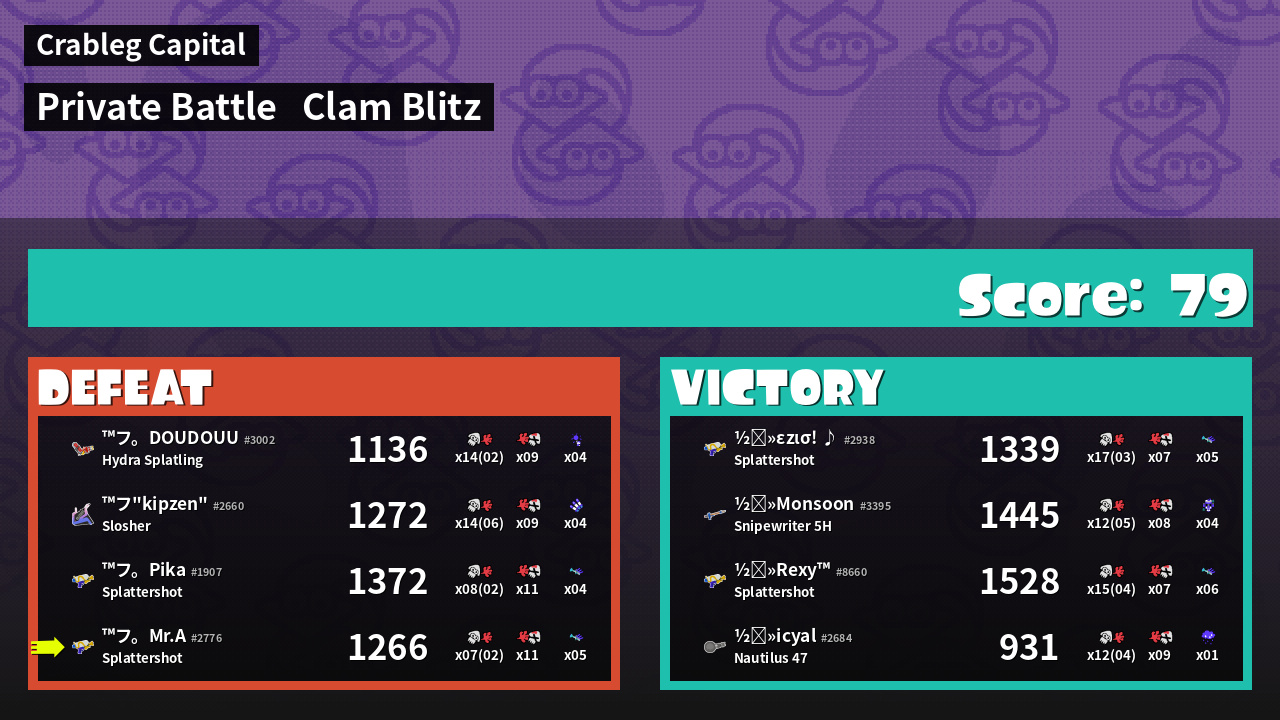 | Weapon | Splattershot ( Suction Bomb / Trizooka) | ||