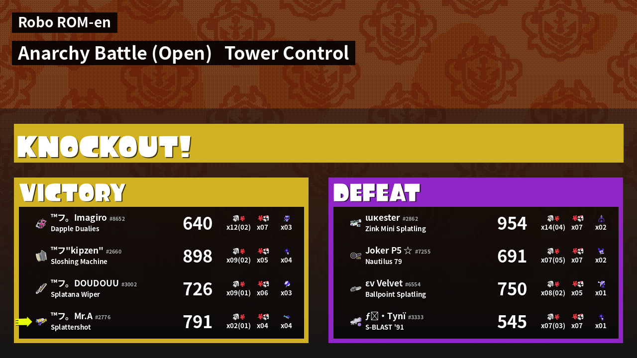 | Mode | Tower Control - Anarchy Battle (Open) | ||