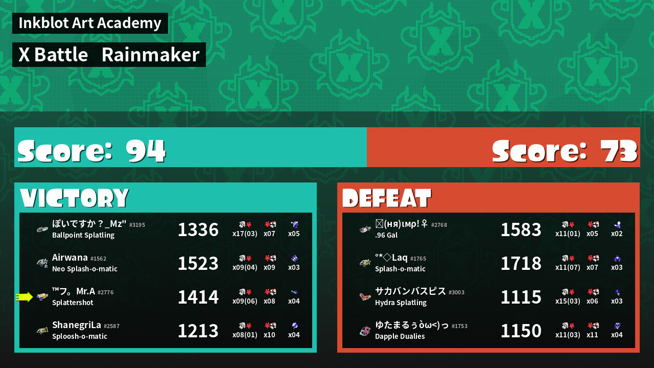 | Medals | #1 Popular Target #1 Splat Assister #1 Checkpoint Breaker | ||