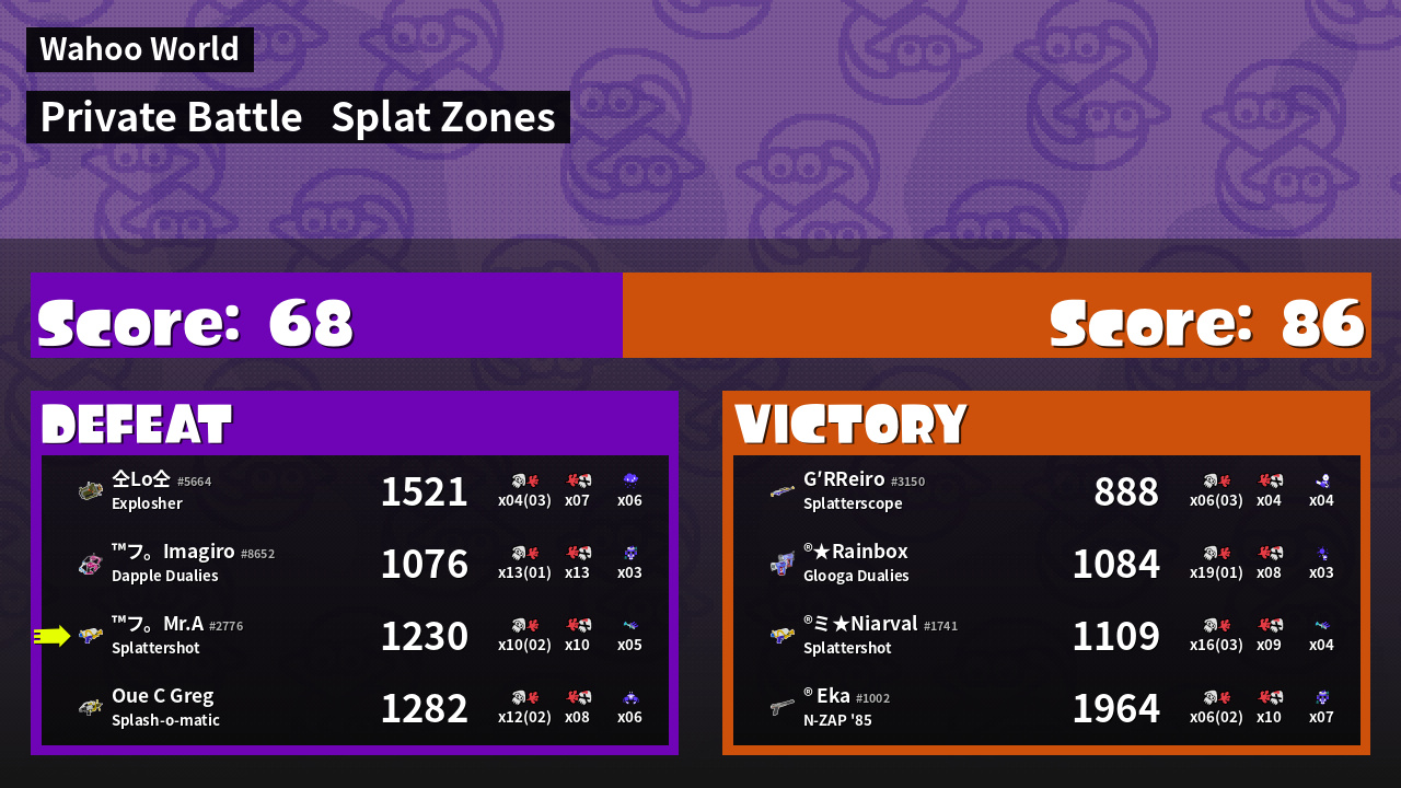 | Medals | #1 Splat Zone Guard #1 Popular Target #1 Ink Consumer | ||