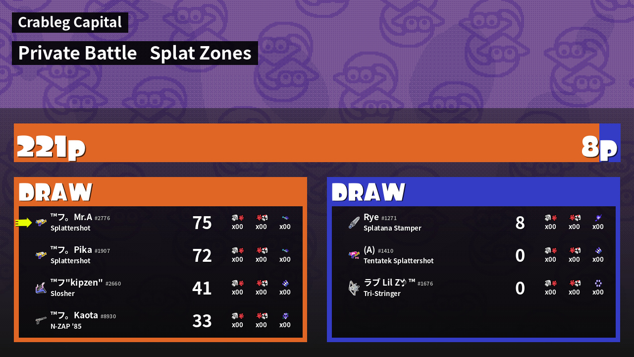 | Weapon | Splattershot ( Suction Bomb / Trizooka) | ||