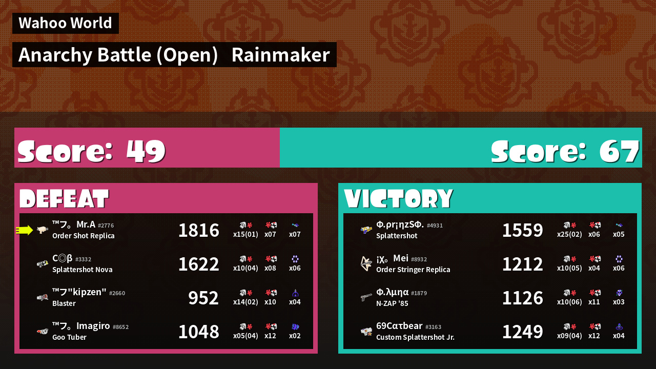 | Mode | Rainmaker - Anarchy Battle (Open) | ||