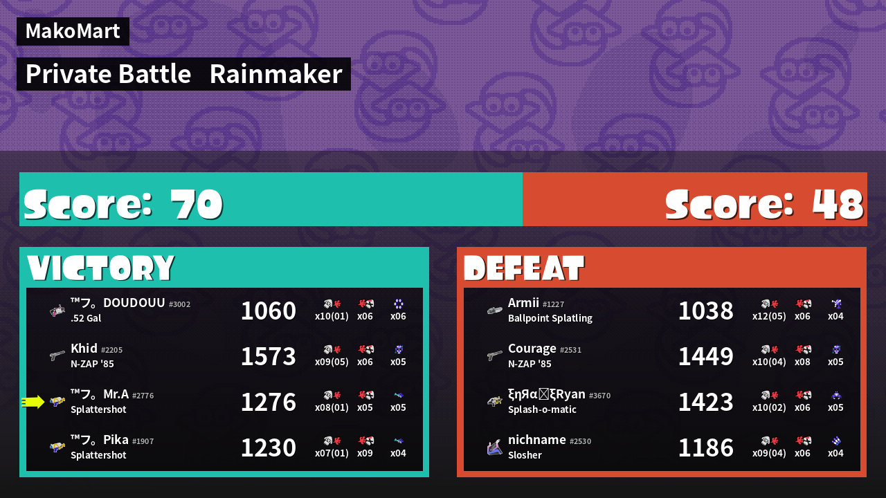 | Weapon | Splattershot ( Suction Bomb / Trizooka) | ||