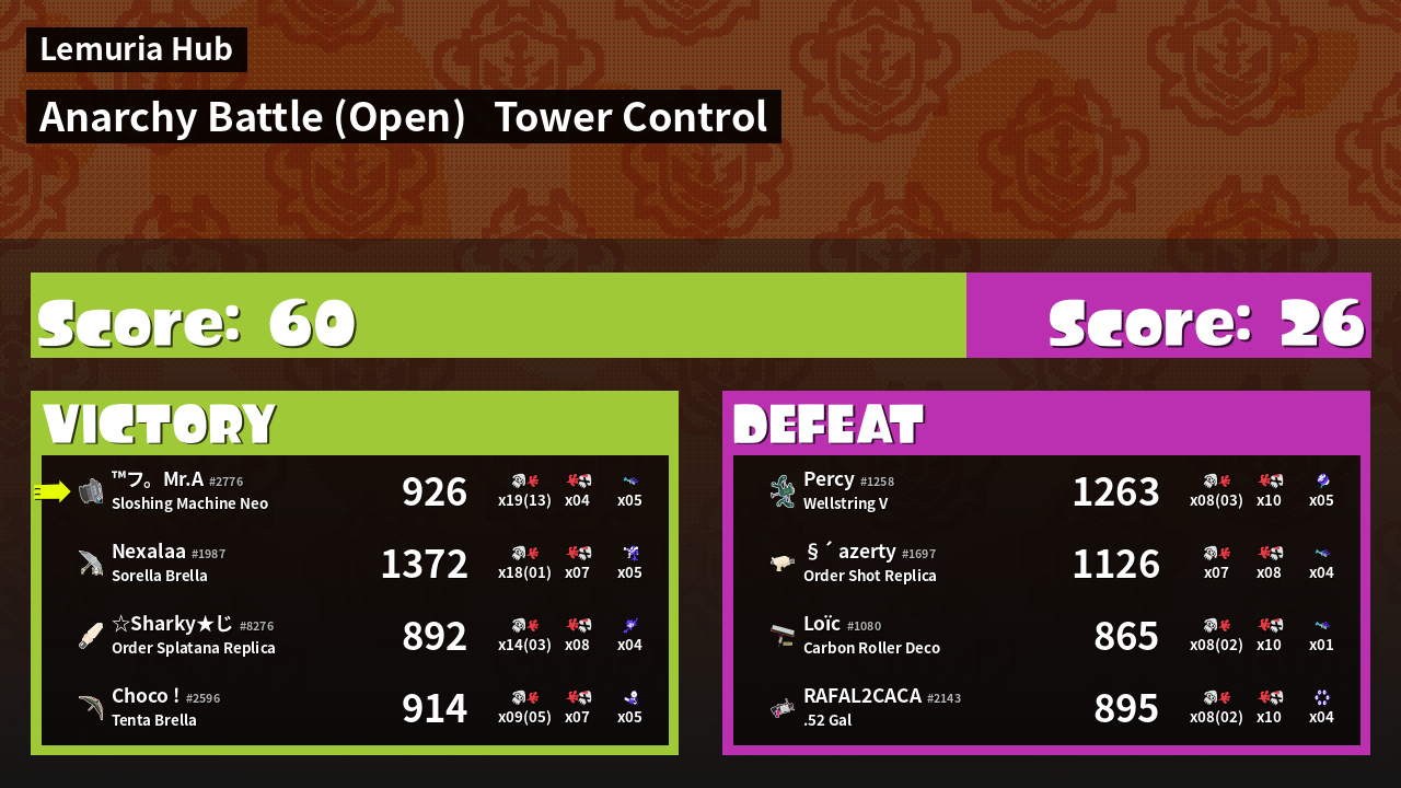 | Mode | Tower Control - Anarchy Battle (Open) | ||
