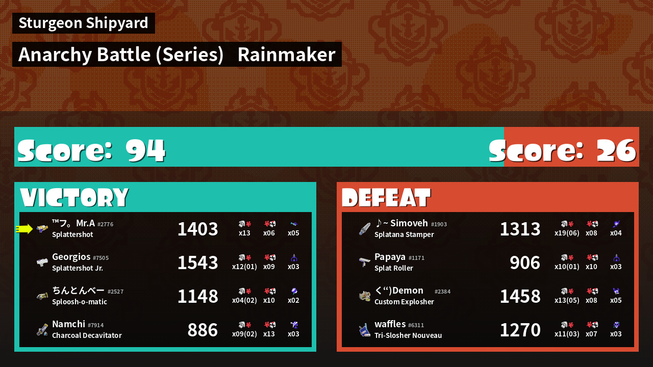 Kills / Deaths | 13 + 0 / 6 > Kill Ratio: 2.17 | ||