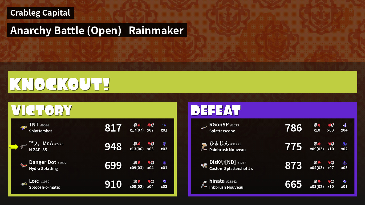 | Mode | Rainmaker - Anarchy Battle (Open) | ||