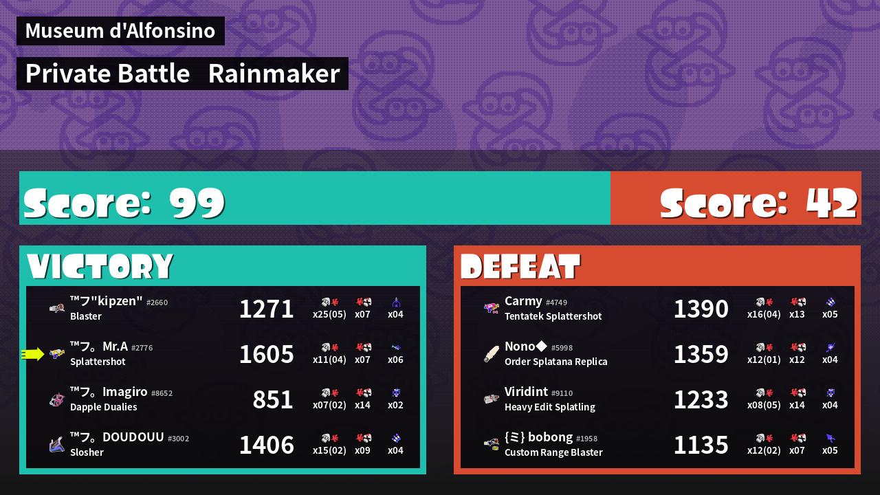 | Weapon | Splattershot ( Suction Bomb / Trizooka) | ||