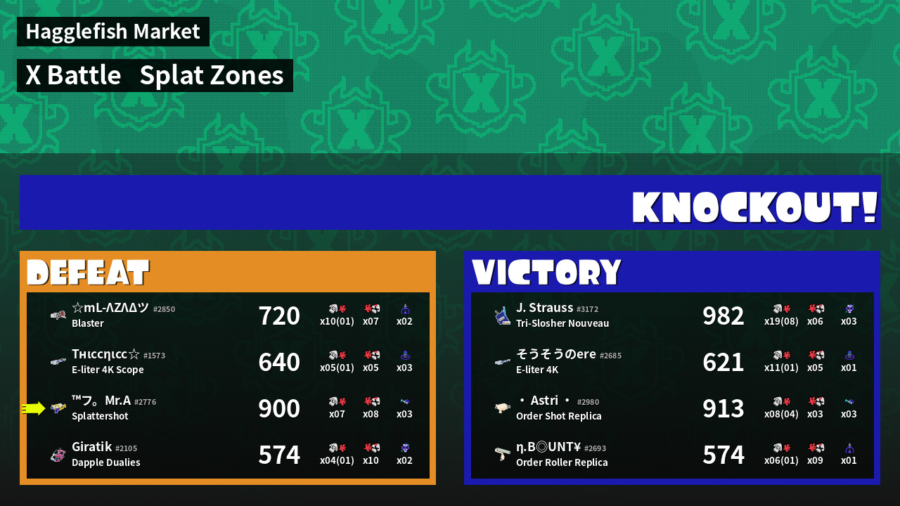 | Mode | Splat Zones - X Battle | ||