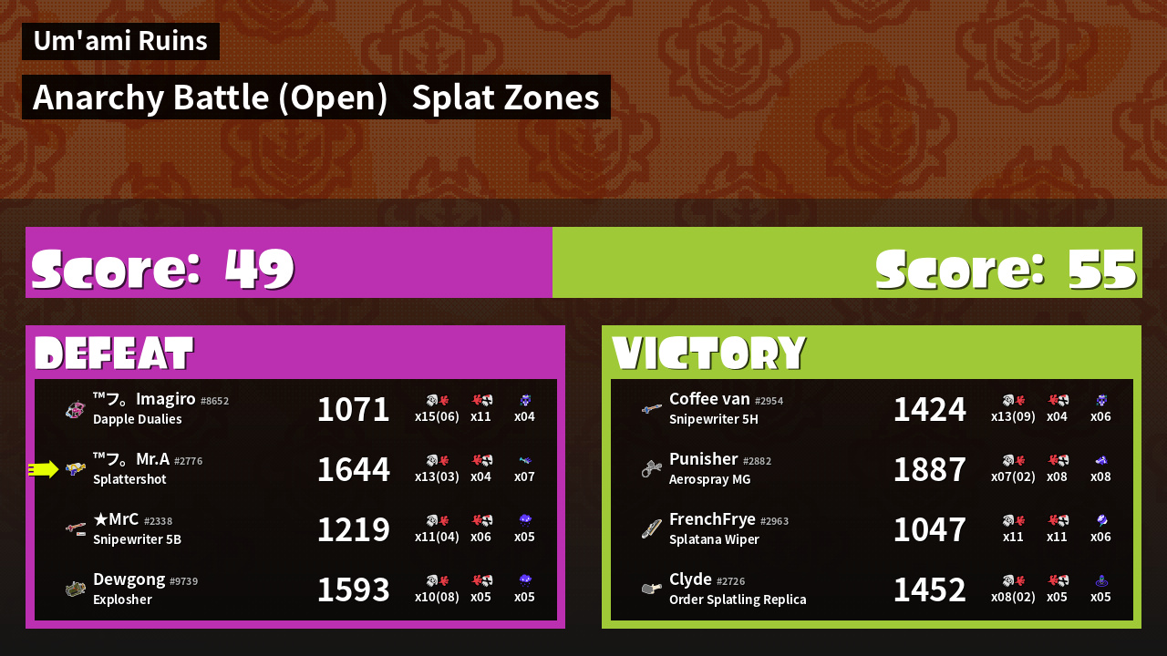 | Mode | Splat Zones - Anarchy Battle (Open) | ||