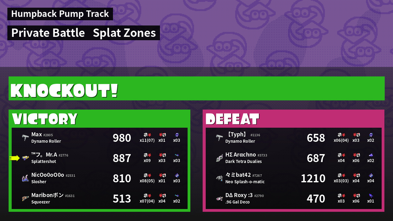 | Mode | Splat Zones - Private Battle | ||