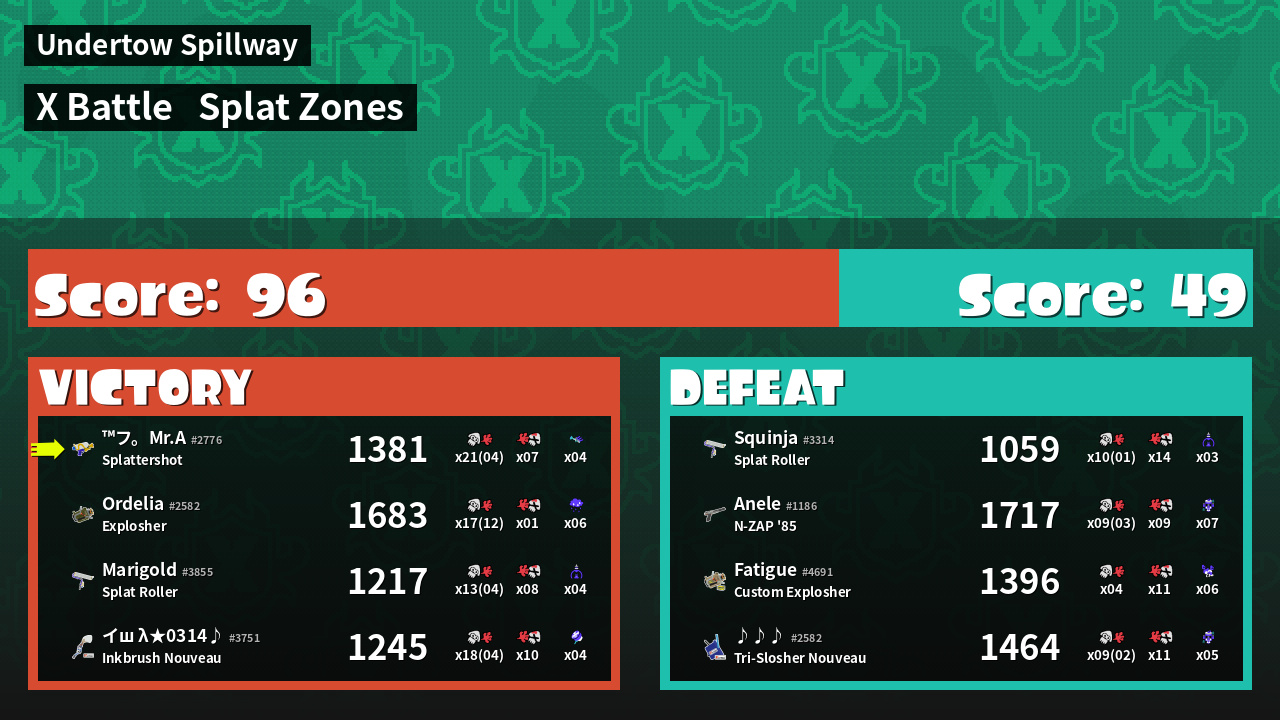 | Mode | Splat Zones - X Battle | ||