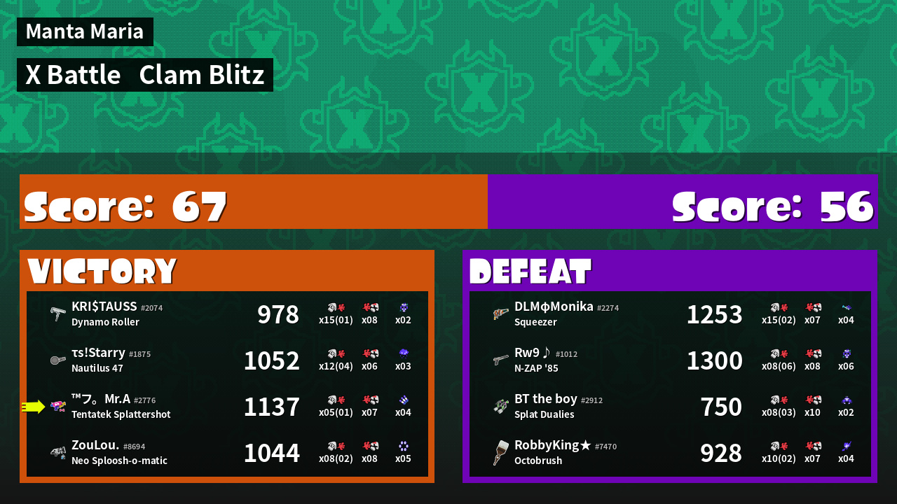 | Weapon | Tentatek Splattershot ( Splat Bomb / Triple Inkstrike) | ||