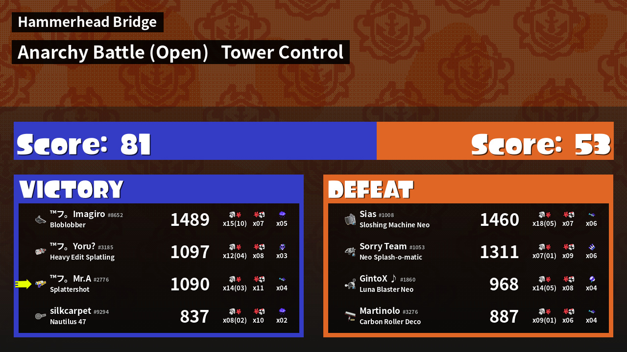 | Mode | Tower Control - Anarchy Battle (Open) | ||