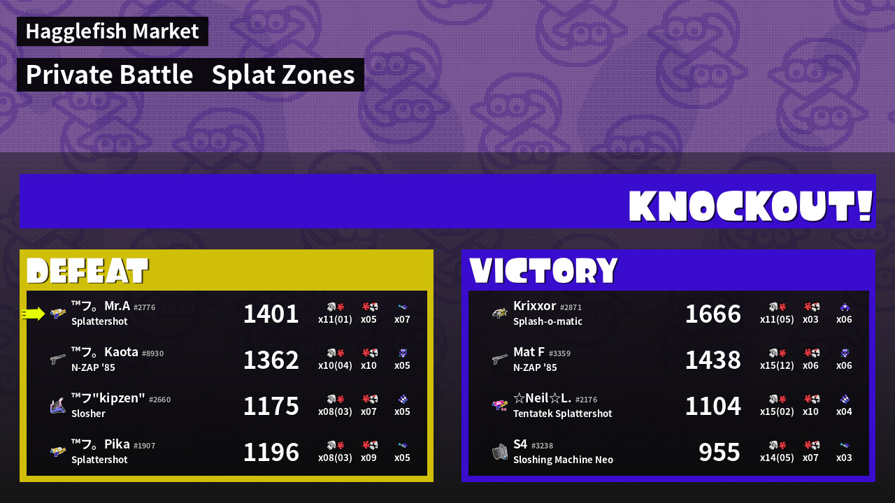 | Mode | Splat Zones - Private Battle | ||
