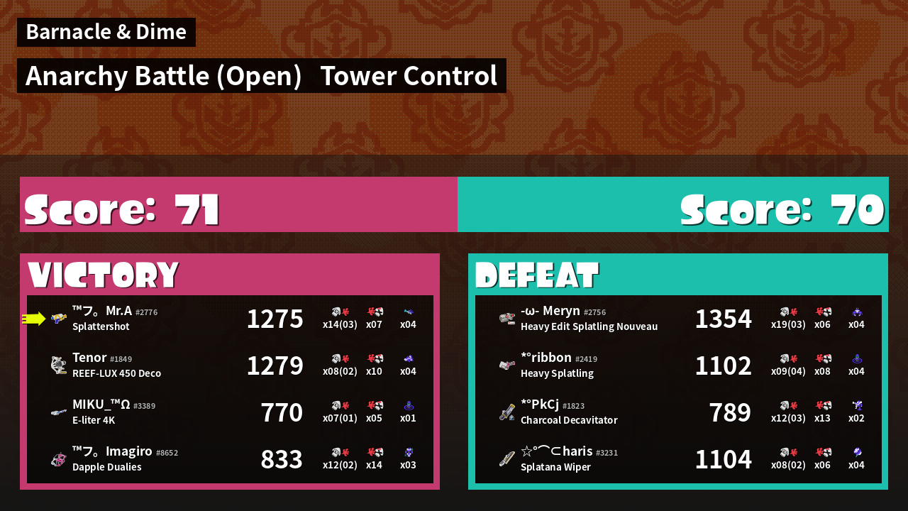 | Mode | Tower Control - Anarchy Battle (Open) | ||